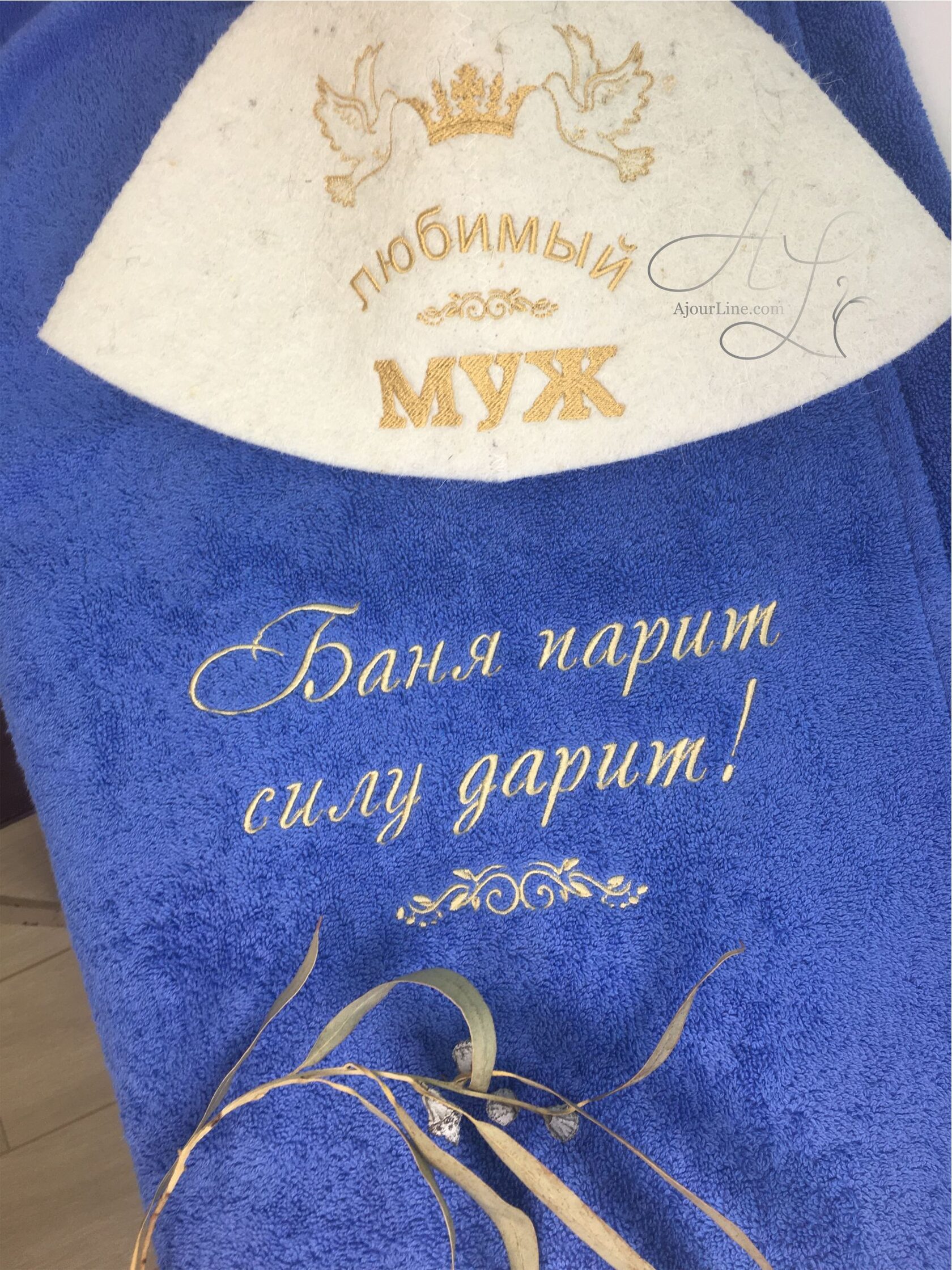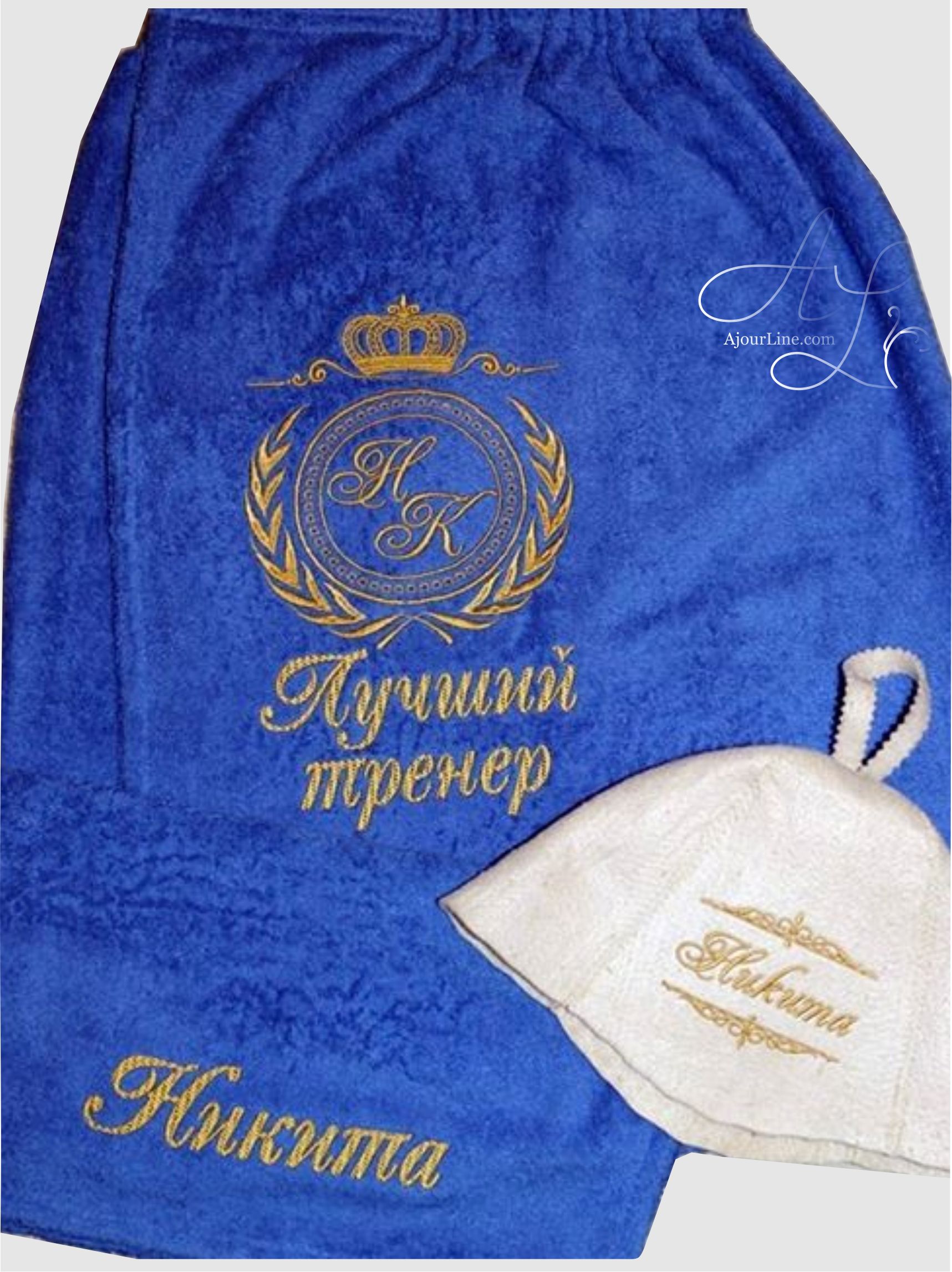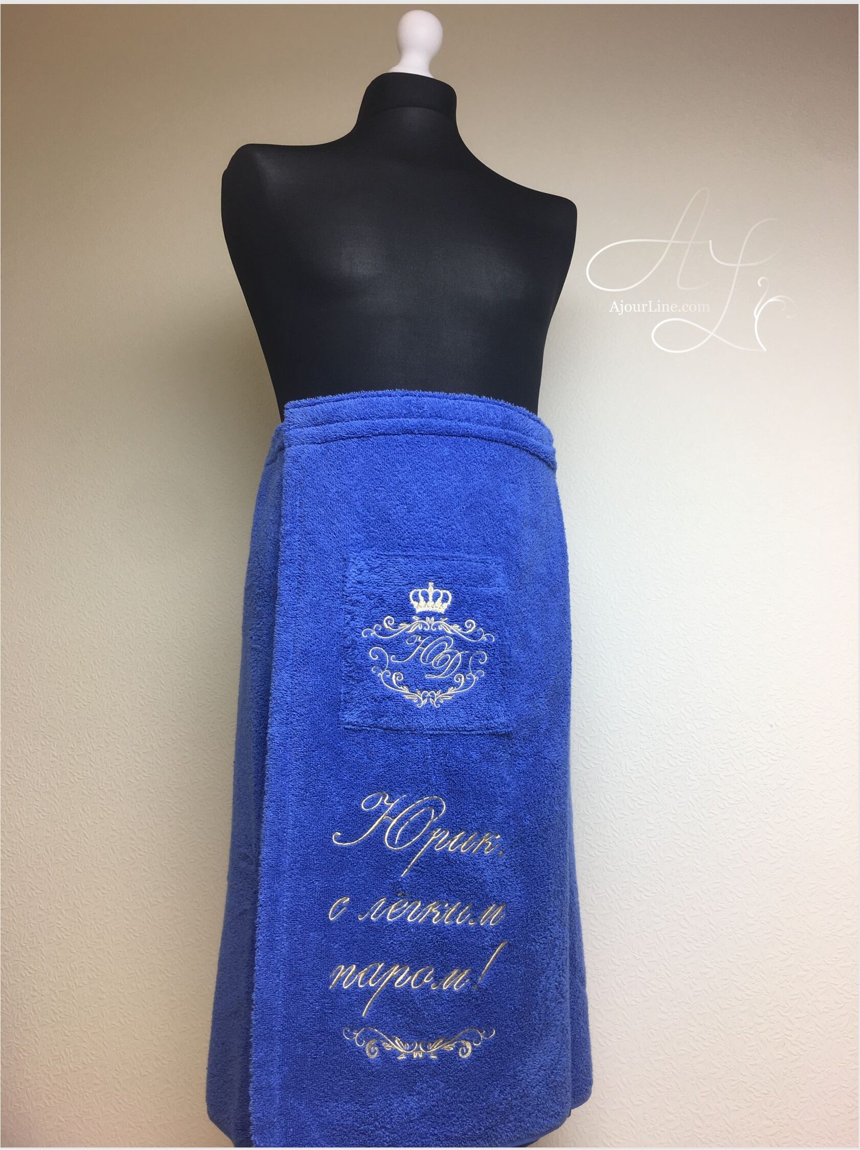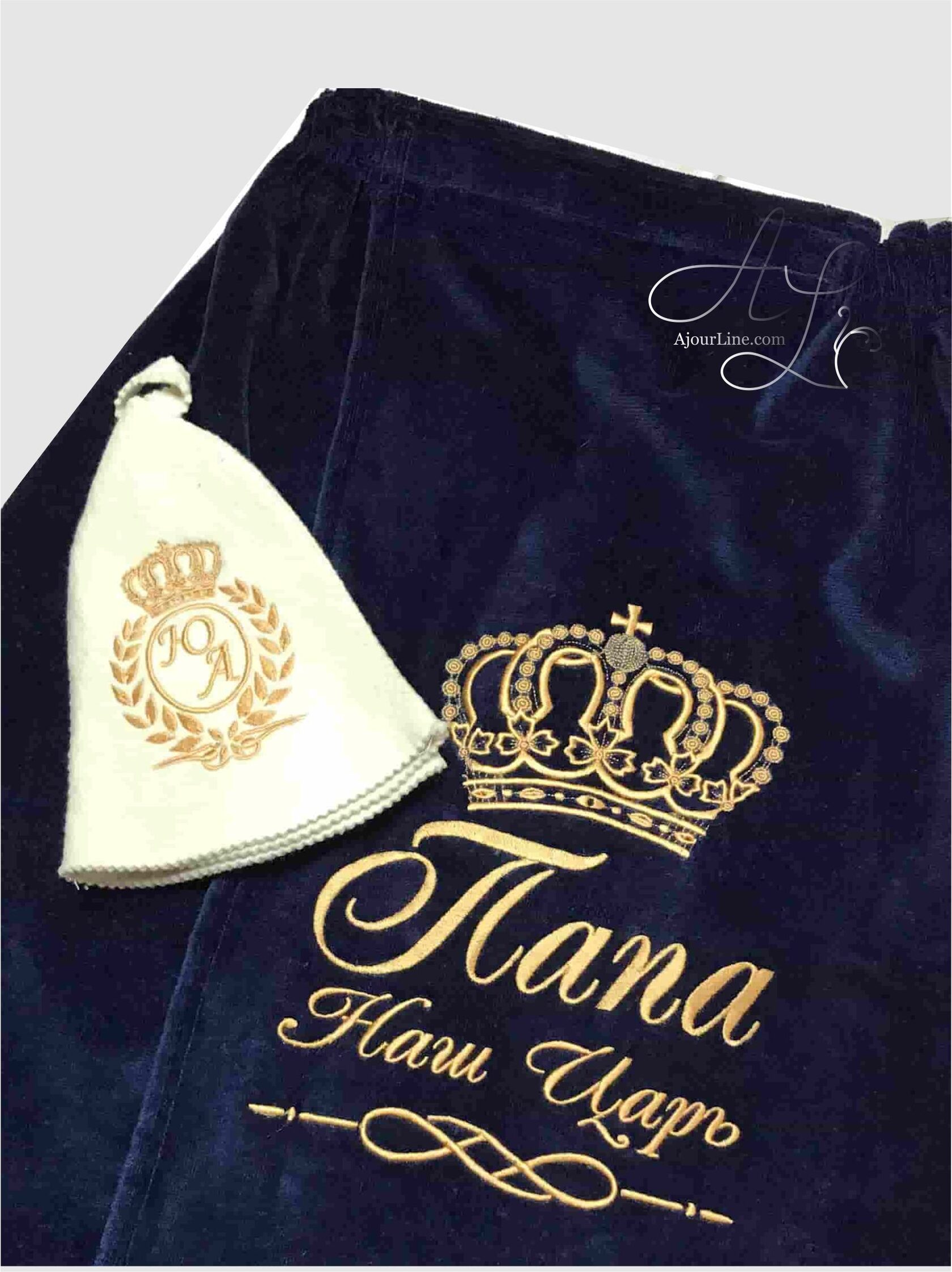 Именной килт для бани Состав: 100% хлопок Вышивка: Примерный повтор дизайна При оформлении заказа в пожеланиях напишите вашу надпись, инициалы, желаемый цвет килта и каким цветом вышивка. Перед изготовлением вы получите эскиз вашего дизайна, все детали вышивки согласуем.